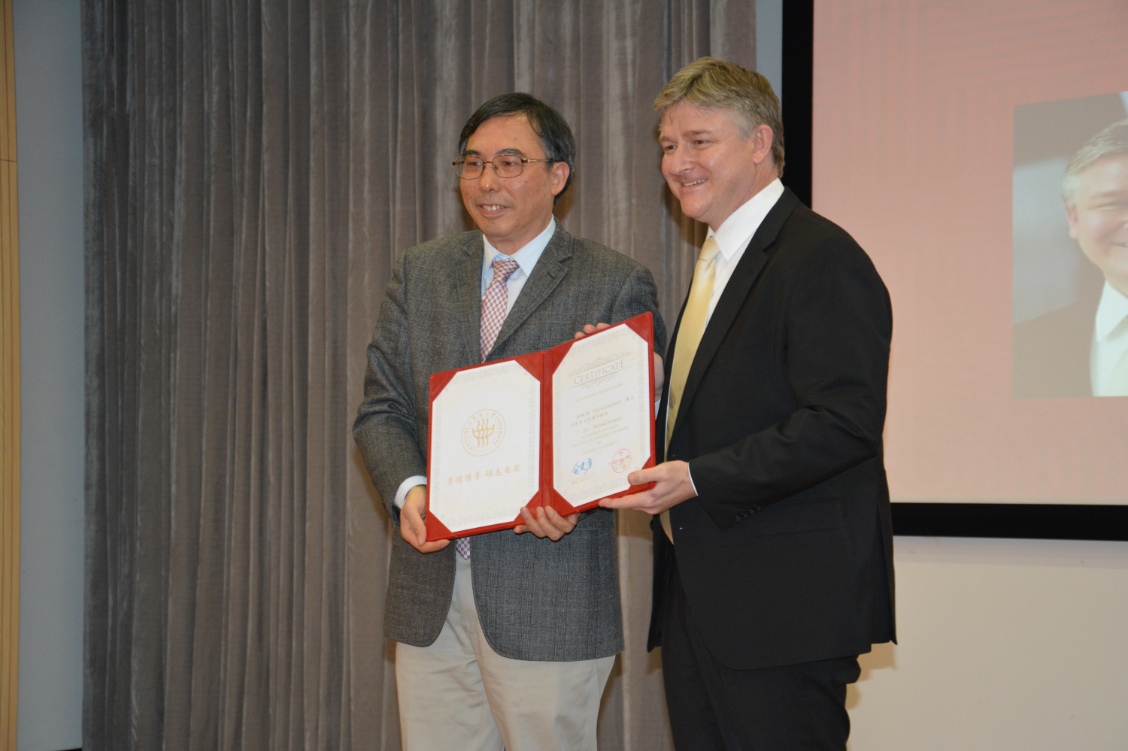 (卿凤翎副校长代表学校为施马可教授颁发聘书)