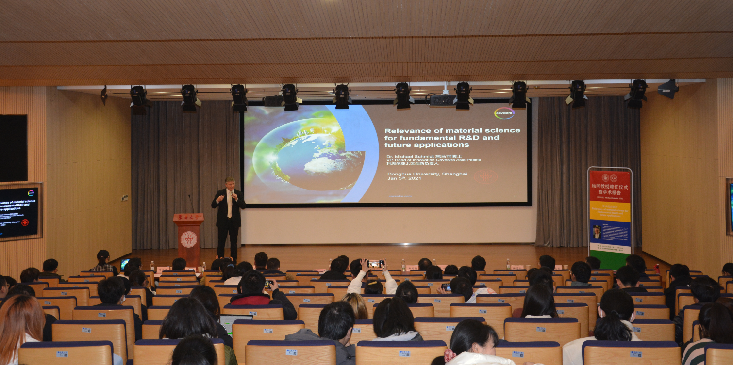 在受聘仪式结束后,施马可教授作了题为“Relevance of material science for fundamental R&D and future applications”的学术报告。报告中施马可教授讲述了科思创所践行的“在中国、为世界”的创新战略,以及通过复合材料产品和技术创新实现造福社会,改善生活品质,同时减少对环境影响的美好愿景。